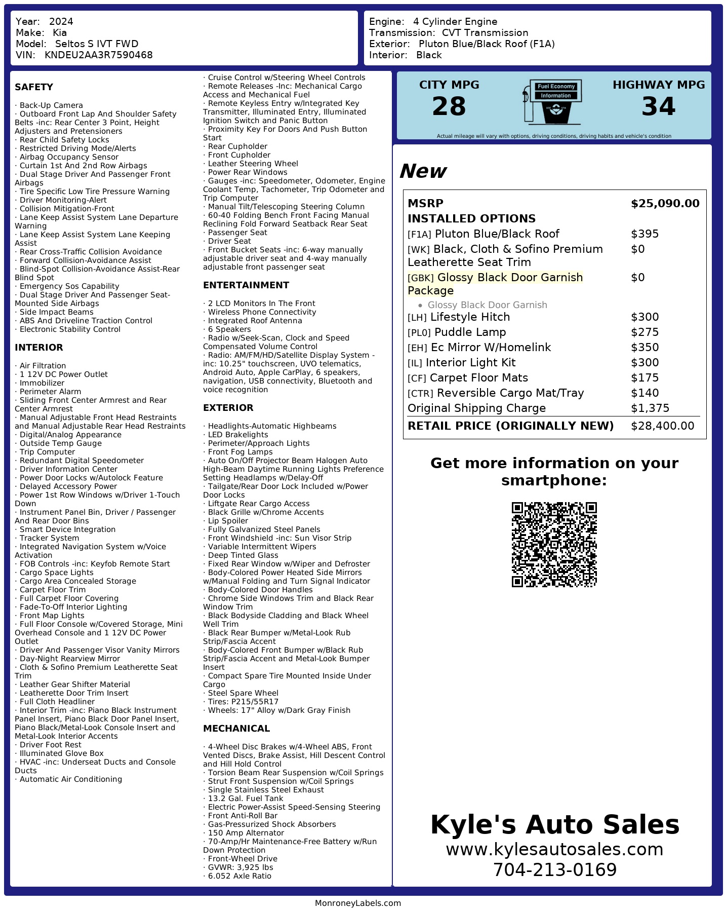 2024 Kia Seltos S – Big Screen – Blind Spot Monitoring – 68K Miles